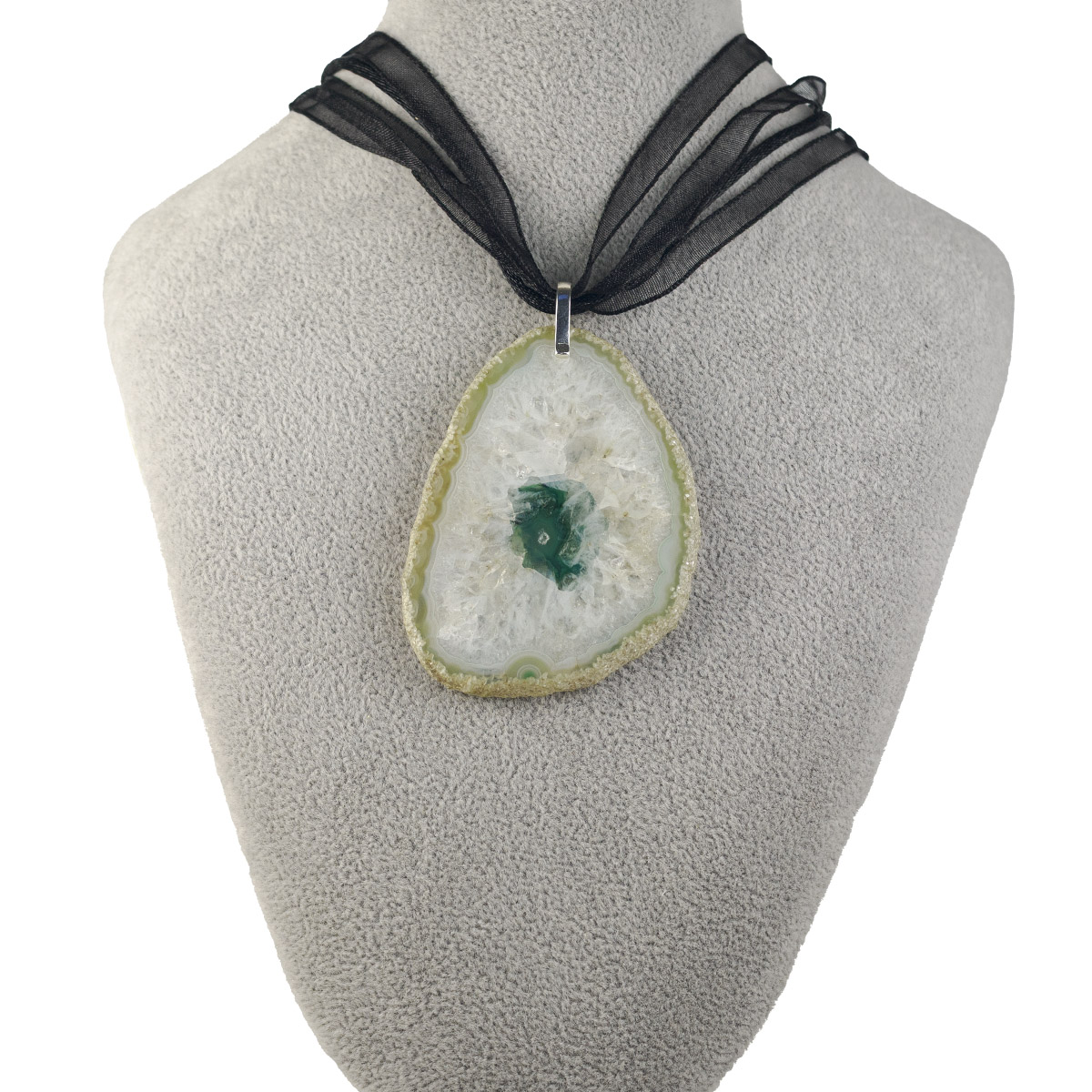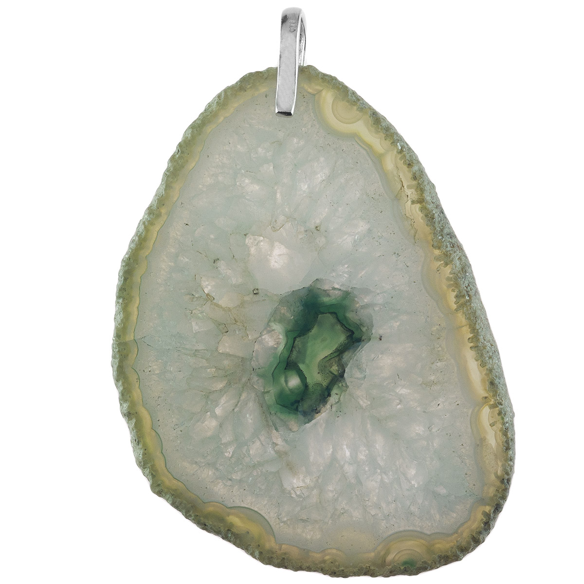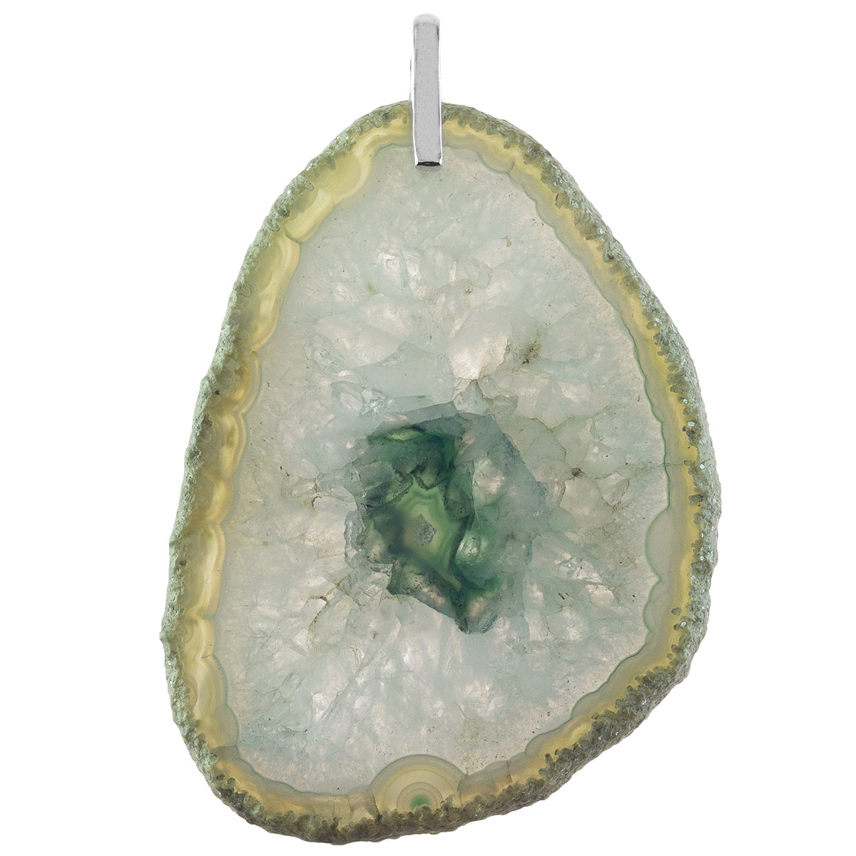 Oryginalny wisior z naturalnym, nieregularnym agatem w kolorze białym, ze srebrną zawieszką próby 0,925.