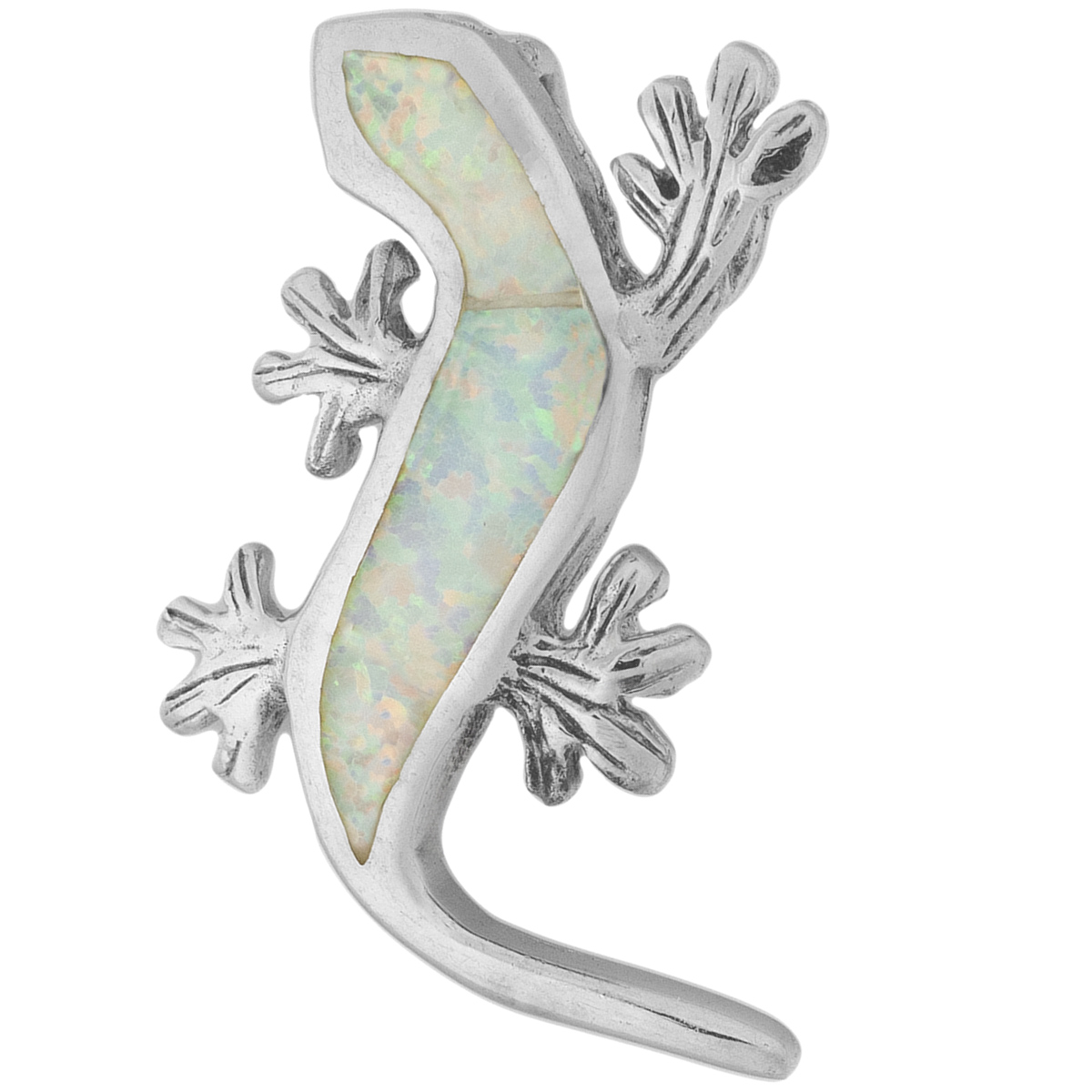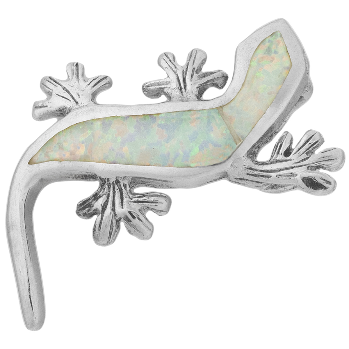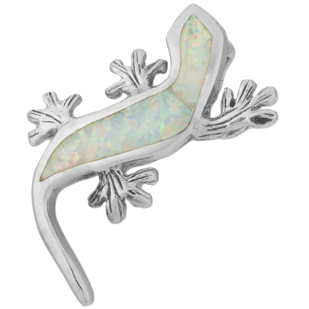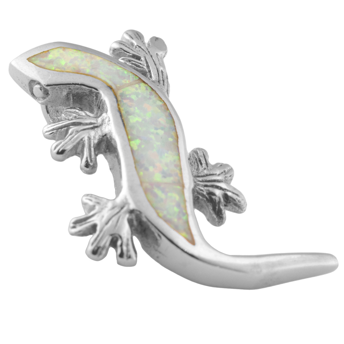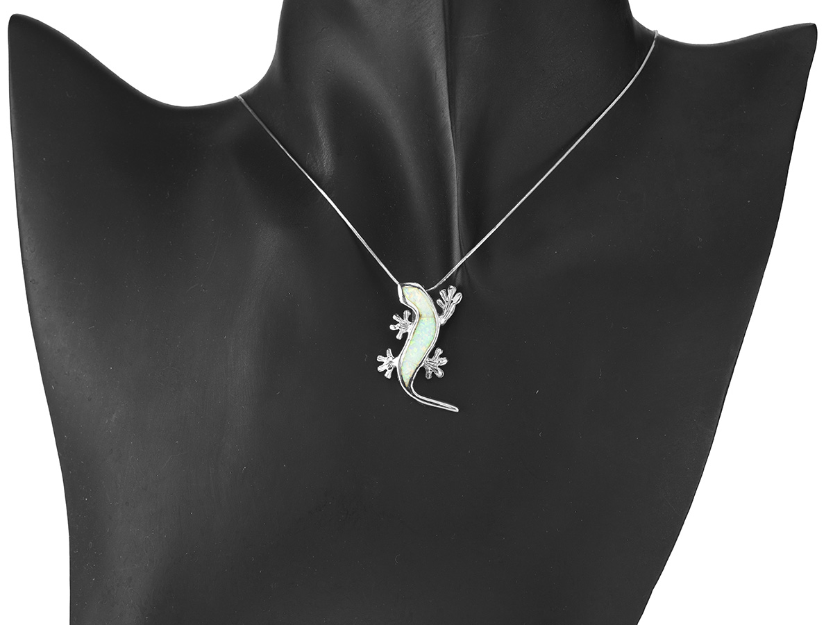 Oryginalny wisior jaszczurka z opalizującym białym opalem Gilsona, wykonany ze srebra próby 0,925.